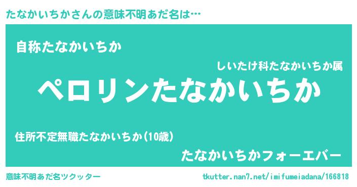 | 男性向けラノベタイトル風あだ名 | 『たなかいちかの憂鬱』 |