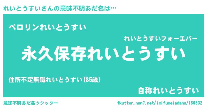 | 男性向けラノベタイトル風あだ名 | 『うちのれいとうすいが世界を掌握している!』 |