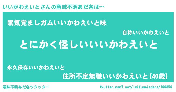 | 胡散臭い通販商品みたいなあだ名 | 『信頼と実績のサプリメント…その名も「いいかわえいと」』 |