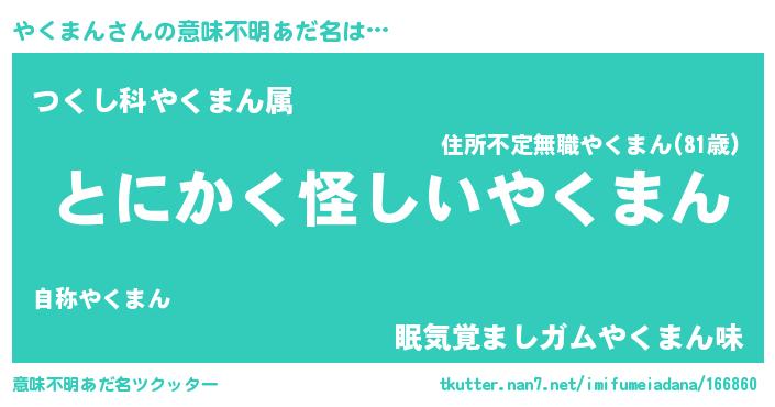 | 胡散臭い通販商品みたいなあだ名 | 『全米が絶賛したサプリメント…その名も「やくまん」』 |
