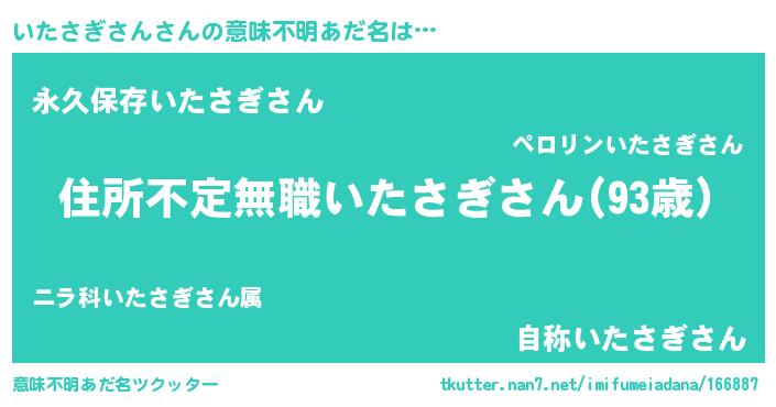 | 胡散臭い通販商品みたいなあだ名 | 『あなたにだけ特別に提供する世界で10本だけ現存している希少なブランデー…その名も「いたさぎさん」』 |