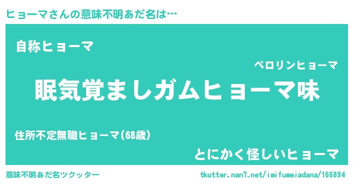 | ヒーロー風カッコイイあだ名 | 『天空の使者ヒョーマ』『天弓騎士ヒョ』 |
