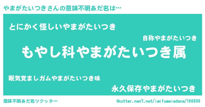| 胡散臭い通販商品みたいなあだ名 | 『伝統あるサプリメント…その名も「やまがたいつき」』 |