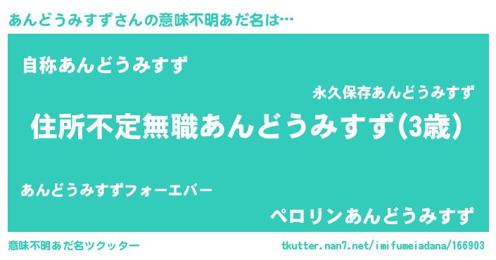 | ヘコむあだ名 | 『あんにー』『あんどうみすず(遠い目)』 |