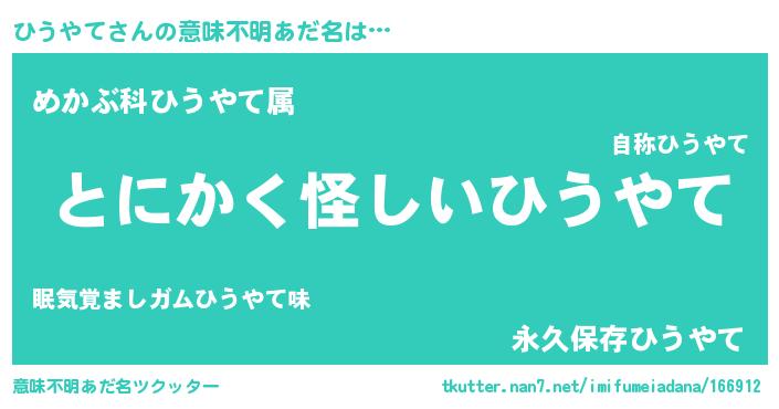 | 胡散臭い通販商品みたいなあだ名 | 『伝統あるサプリメント…その名も「ひうやて」』 |