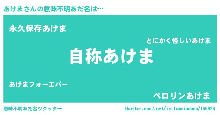 | ヘコむあだ名 | 『あけま(小並感)』『あけふぇ~』 |