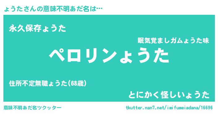 | 胡散臭い通販商品みたいなあだ名 | 『億万長者になれるブレスレット…その名も「ょうた」』 |
