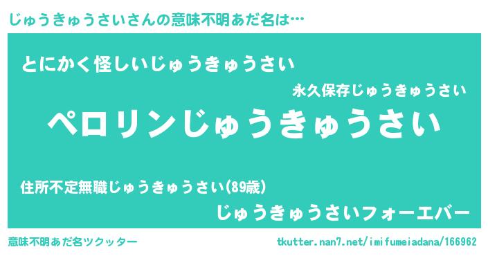 | 2回繰り返すあだ名 | 『どしどし』『じゅじゅ』『じじゅゅ』 |