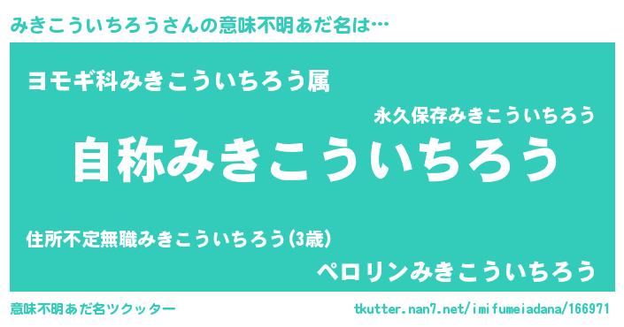 | ヘコむあだ名 | 『みきにー』『みきこういちろう(小並感)』 |