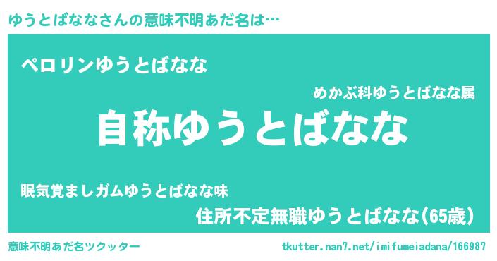 | 肩書あだ名 | 『ゆうとばなな閣下』『ゆうとばなな船長』 |