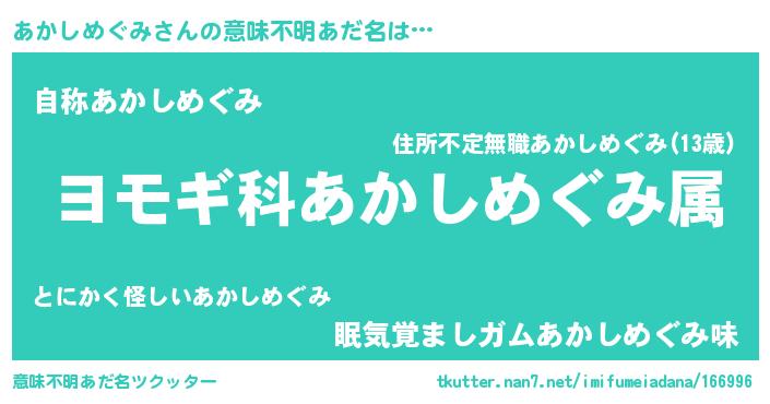 | ヘコむあだ名 | 『あかっ子』『あかしめぐみ(小並感)』 |