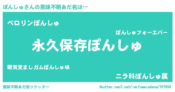| ヘコむあだ名 | 『ぽんしゅ(小並感)』『ぽんもー』 |