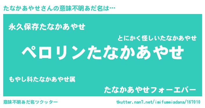 | ヒーロー風カッコイイあだ名 | 『スーパータナカアヤセ』『黄金騎士タナ』 |