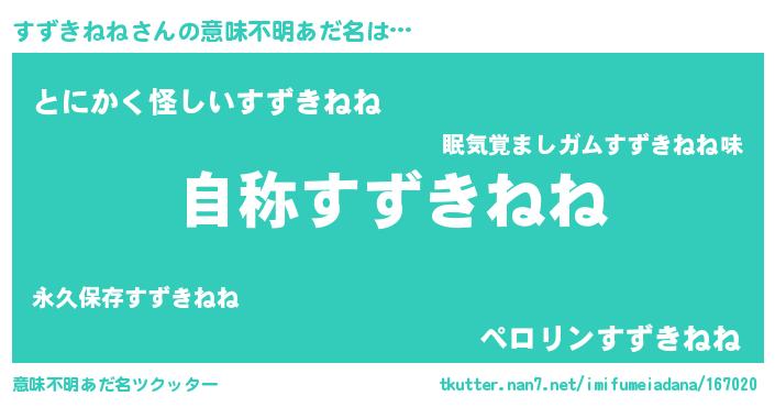 | 欧米人風あだ名 | 『すずきねね・ステッグマイヤー』 |