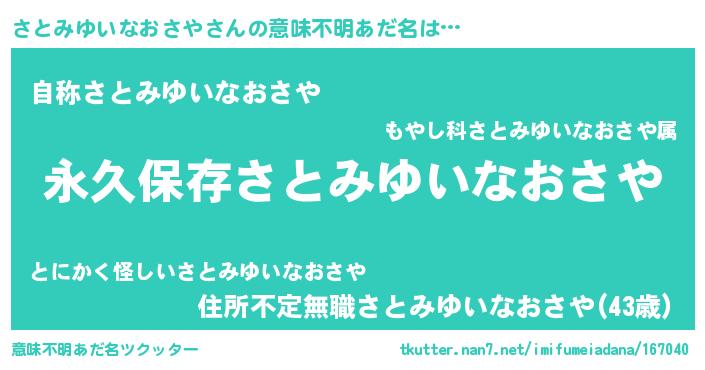 | ヘコむあだ名 | 『さとみゆいなおさや(笑)』『さと太郎』 |