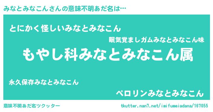 | ヘコむあだ名 | 『みな太郎』『みなにゅー』 |