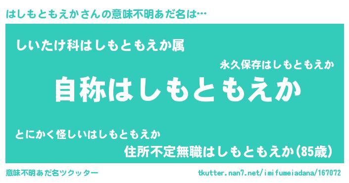 | 欧米人風あだ名 | 『ケンブリッジはしもともえか』 |