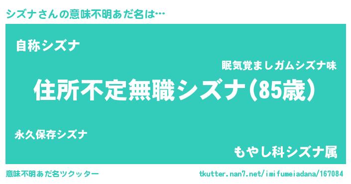 | ヘコむあだ名 | 『シズナ(震え声)』『シズお』 |