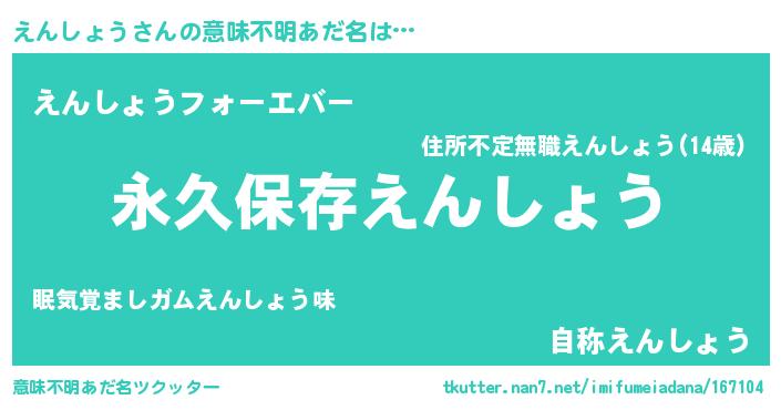 | 男性向けラノベタイトル風あだ名 | 『えんしょうという概念が存在しない退屈な世界 』 |