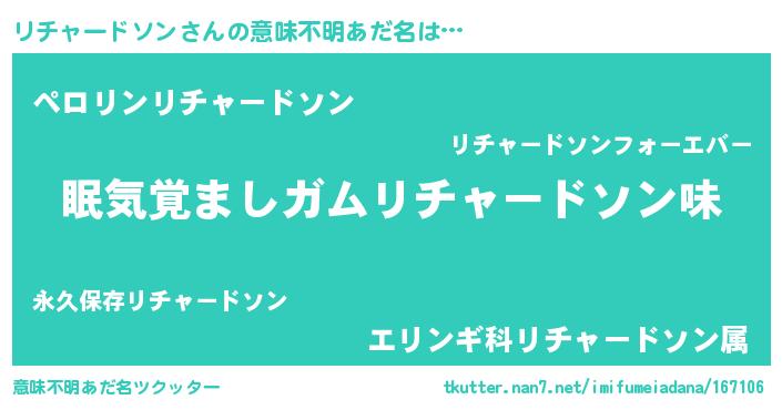 | 男性向けラノベタイトル風あだ名 | 『リチャードソンに滅ぼされるだけの簡単なお仕事です』 |