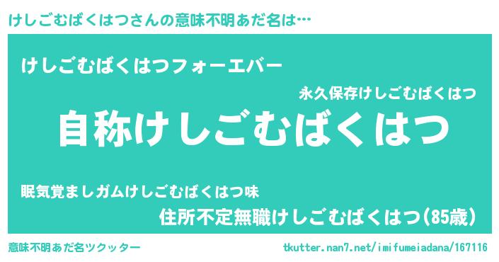 | 胡散臭い通販商品みたいなあだ名 | 『芸能人もオススメする高麗人参…その名も「けしごむばくはつ」』 |