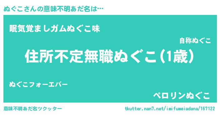 | ヘコむあだ名 | 『ぬぐにー』『豆乳』『ぬぐっ子』 |