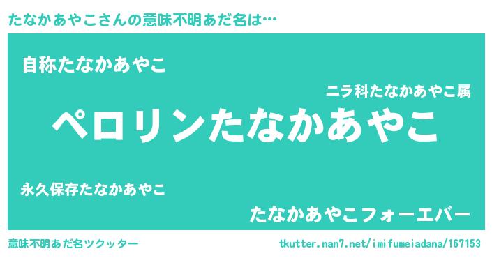 | ヒーロー風カッコイイあだ名 | 『スーパータナカアヤコ』『幻影騎士タナ』 |
