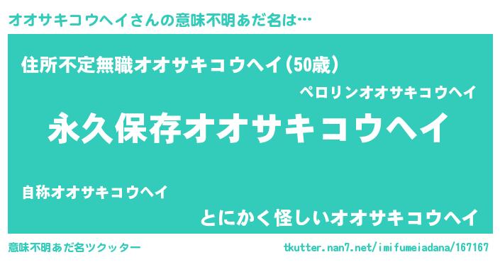 | ヘコむあだ名 | 『オオサキコウヘイ(小並感)』『オオ太郎』 |