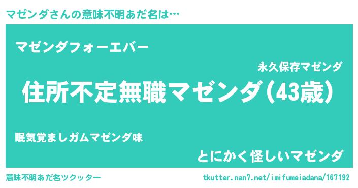 | ヒーロー風カッコイイあだ名 | 『仮面マゼダー』『ウルトラマゼンダマン』 |