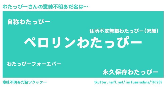 | 男性向けラノベタイトル風あだ名 | 『ワタッピーアートオンライン』 |