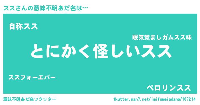 | 料理風あだ名 | 『ススの炊き込みご飯』『ススのトマト煮』 |