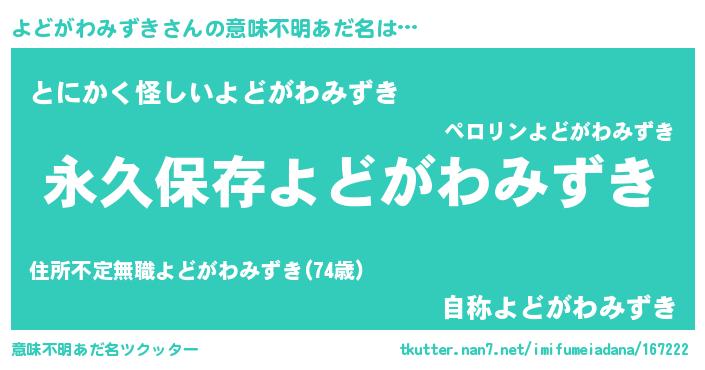 | 伝説のあだ名 | 『古より伝わる吟遊詩人よどがわみずき』 |