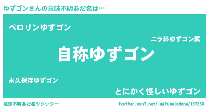 | 男性向けラノベタイトル風あだ名 | 『Re:ゆずゴンから始める異世界生活』 |