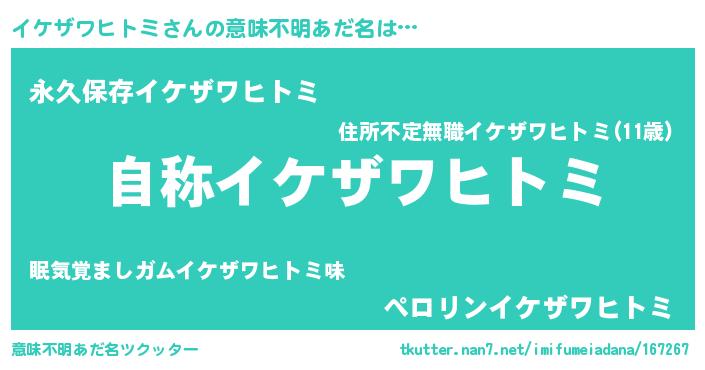 | ヘコむあだ名 | 『イケザワヒトミ(笑)』『イケふぇ~』 |