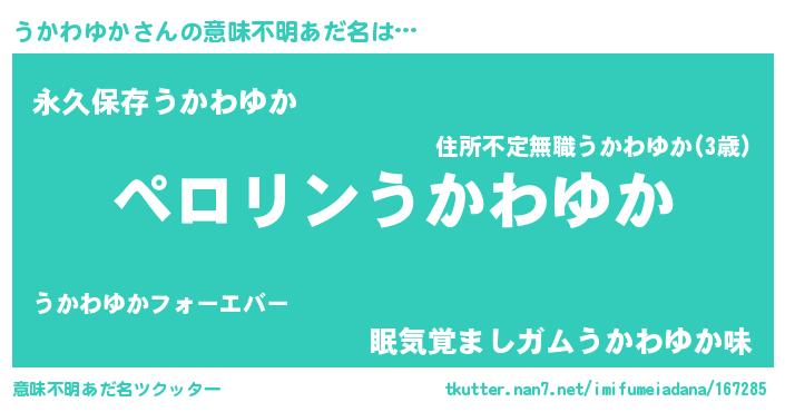 | ヘコむあだ名 | 『うかっふぃ~』『うかわゆか(小並感)』 |