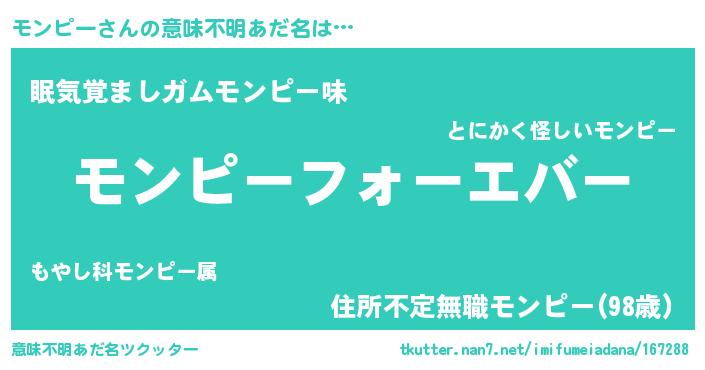 | 伝説のあだ名 | 『秘められし忍者モンピー』 |