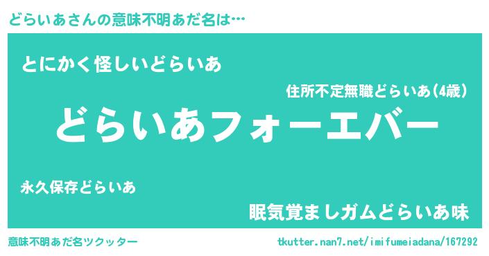 | 女子向けラノベタイトル風あだ名 | 『どらいあの雑貨屋さん』 |
