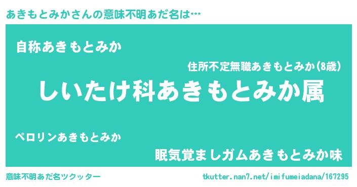 | 男性向けラノベタイトル風あだ名 | 『アキモトミカスレイヤー』 |