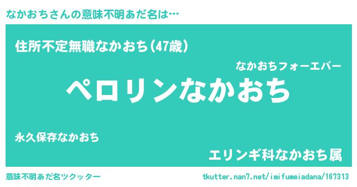 | 男性向けラノベタイトル風あだ名 | 『なかおちの憂鬱』 |