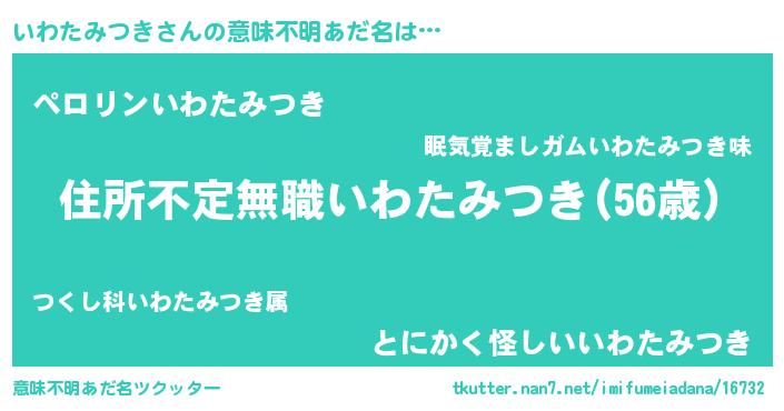 | ヒーロー風カッコイイあだ名 | 『仮面イワダー』『スーパーイワタミツキ』 |