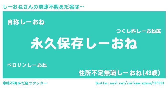 | 男性向けラノベタイトル風あだ名 | 『しーおねという概念が存在しない退屈な世界 』 |