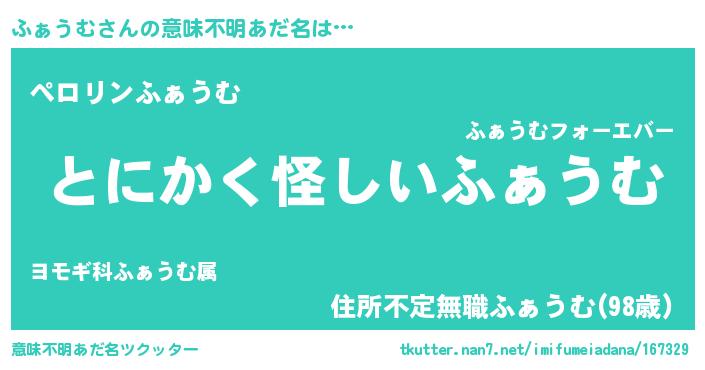 | 2回繰り返すあだ名 | 『ぬれぬれ』『ふぁふぁ』『ふふぁぁ』 |