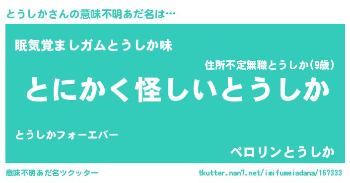 | ヒーロー風カッコイイあだ名 | 『炎刃騎士トウ』『天空の使者とうしか』 |