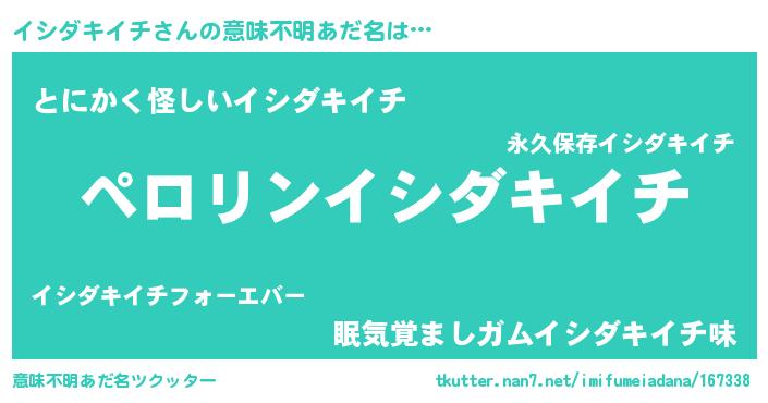 | ヒーロー風カッコイイあだ名 | 『スーパーイシダキイチ』『幻影騎士イシ』 |