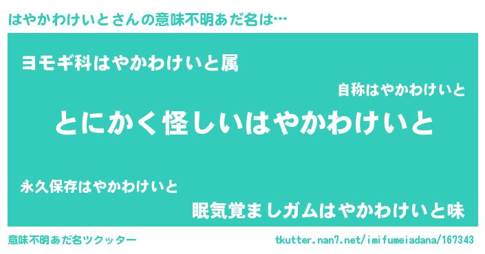 | ヘコむあだ名 | 『はやっちょ』『はやかわけいと(震え声)』 |