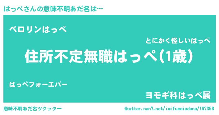 | ヒーロー風カッコイイあだ名 | 『仮面ハッダー』『スーパーハッペ』 |