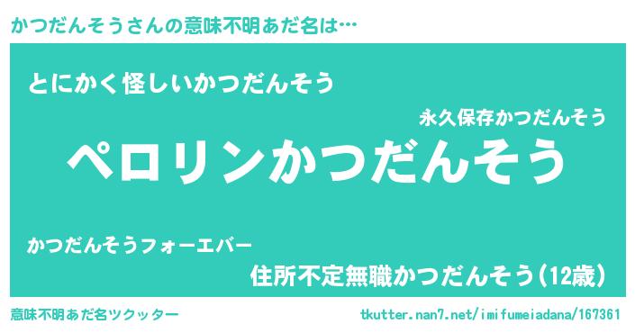 | 男性向けラノベタイトル風あだ名 | 『かつだんそうの憂鬱』 |