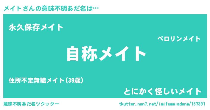 | ファンタジー風あだ名 | 『ゼメイトゥ』『メイディッシュ』 |