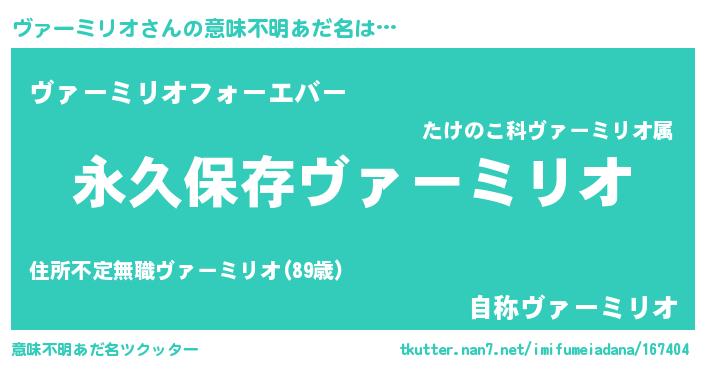 | 胡散臭い通販商品みたいなあだ名 | 『前代未聞の健康食品…その名も「ヴァーミリオ」』 |