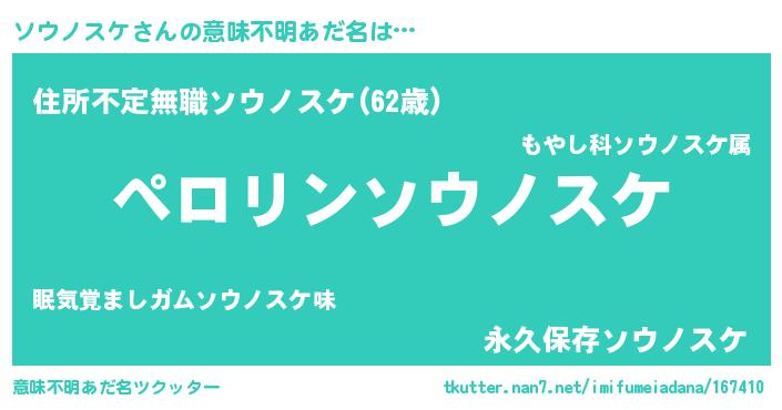| 男性向けラノベタイトル風あだ名 | 『ソウノスケの憂鬱』 |